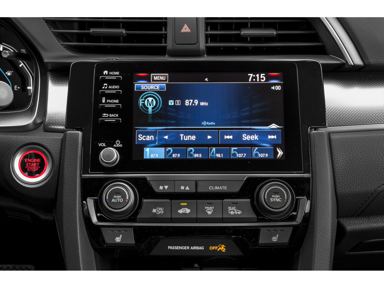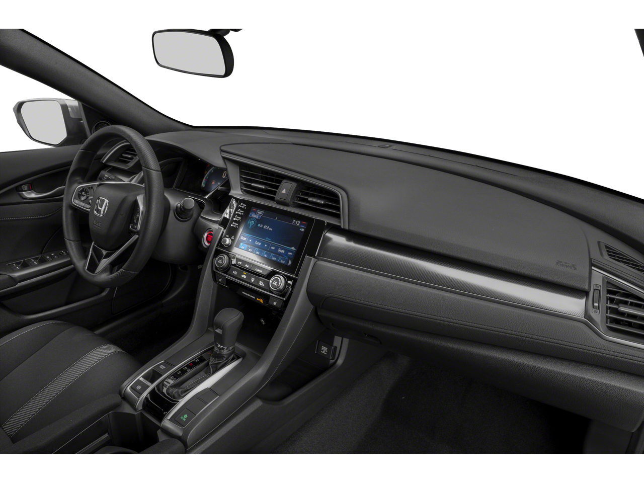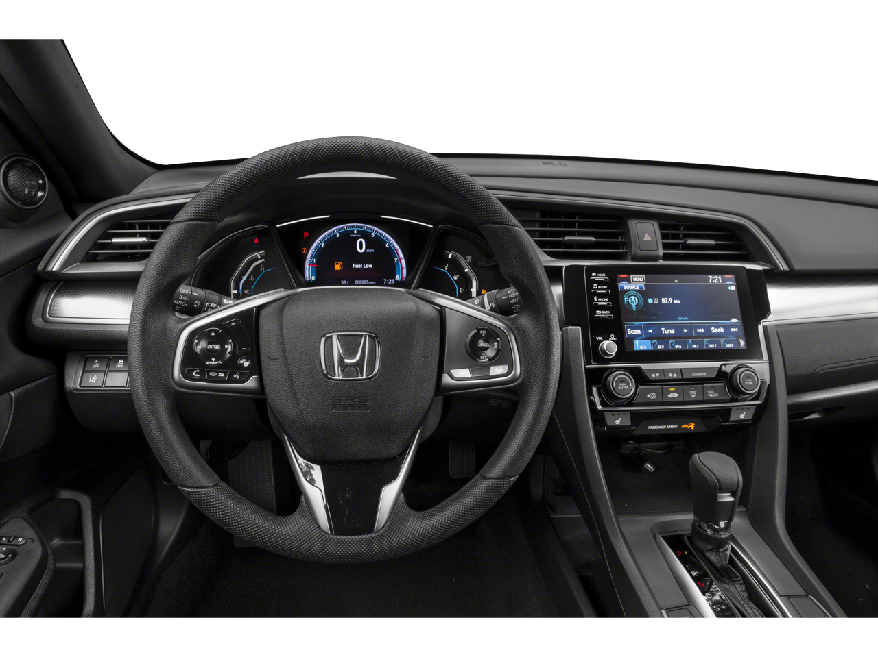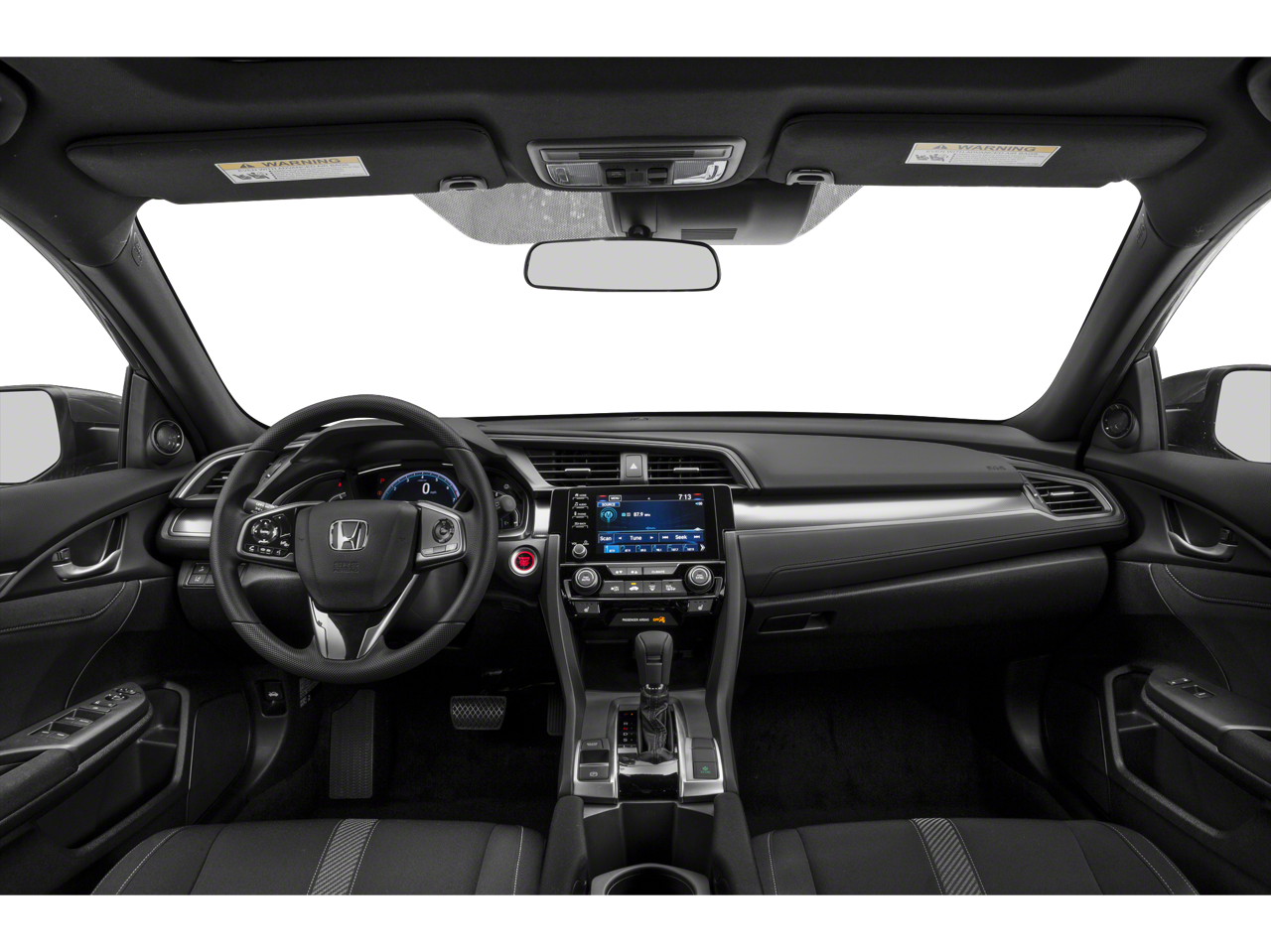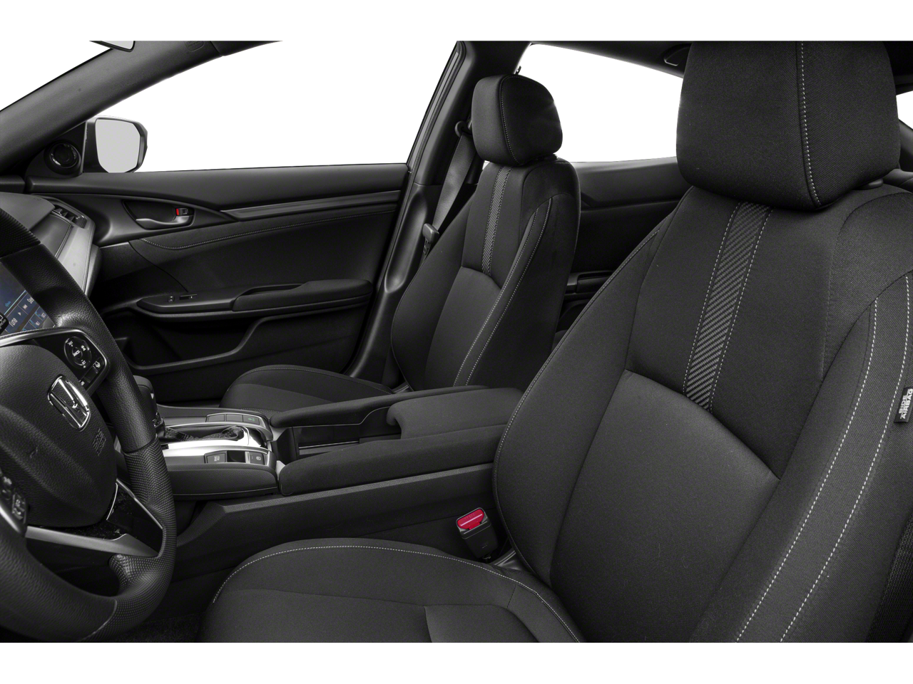 Black w/Cloth Seat Trim, 17 Alloy Wheels, 4-Wheel Disc Brakes, 8 Speakers, ABS Brakes, Air Conditioning, Alloy Wheels, AM/FM radio: SiriusXM, Apple CarPlay / Android Auto, Automatic temperature control, Brake Assist, Bumpers: body-color, Delay-off Headlights, Driver door bin, Driver vanity mirror, Dual Front Impact Airbags, Dual Front Side Impact Airbags, Electronic Stability Control, Emergency communication system: HondaLink, Exterior Parking Camera Rear, Fabric Seating Surfaces, Forward collision: Collision Mitigation Braking System (CMBS) + FCW mitigation, Four wheel independent suspension, Front Anti-Roll Bar, Front Bucket Seats, Front Center Armrest, Front Dual Zone A/C, Front Fog Lights, Front reading lights, Fully Automatic Headlights, Heated door mirrors, Illuminated Entry, Low Tire Pressure Warning, Occupant sensing airbag, Outside temperature display, Overhead airbag, Overhead console, Panic alarm, Passenger door bin, Passenger vanity mirror, Power Door Mirrors, Power Steering, Power Sunroof/Moonroof, Power Windows, Radio data system, Radio: 180-Watt HD Audio System, Rear Anti-Roll Bar, Rear seat center armrest, Rear window defroster, Rear window wiper, Reclining Front Bucket Seats, Remote Keyless Entry, Security system, Speed control, Speed-sensing steering, Split Folding Rear Seat, Spoiler, Steering Wheel Mounted Audio Controls, Tachometer, Telescoping steering wheel, Tilt steering wheel, Traction Control, Trip computer, Variably intermittent wipers, Black w/Cloth Seat Trim.