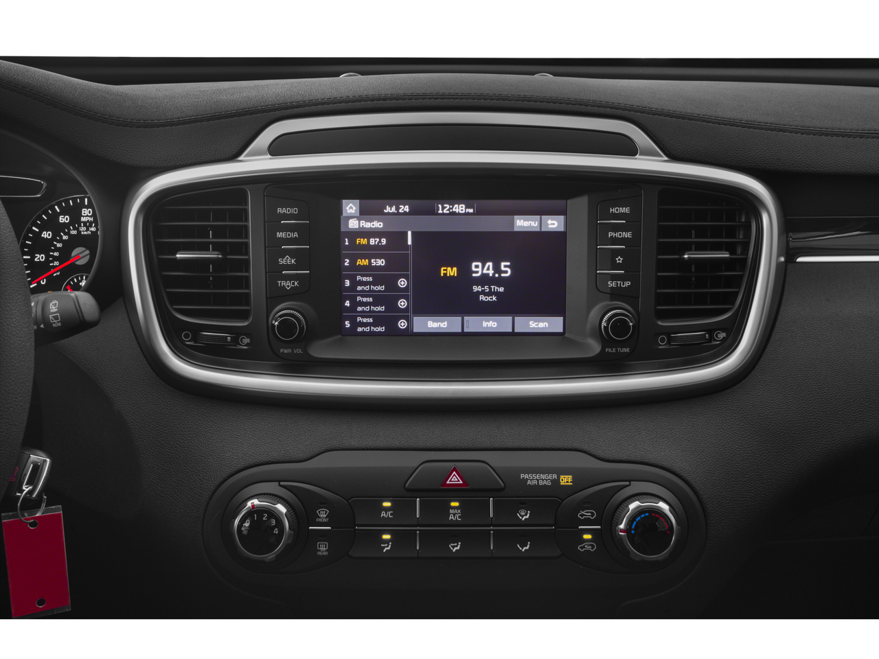 17 x 7.0 Alloy Wheels, 3.51 Axle Ratio, 3rd row seats: split-bench, 4-Wheel Disc Brakes, 6 Speakers, ABS Brakes, Air Conditioning, Alloy Wheels, AM/FM radio, Apple CarPlay & Android Auto, Brake Assist, Bumpers: body-color, Cargo Net (Floor), Carpeted Floor Mats (7-Passenger), Delay-off Headlights, Driver door bin, Driver vanity mirror, Dual Front Impact Airbags, Dual Front Side Impact Airbags, Electronic Stability Control, Exterior Parking Camera Rear, Four wheel independent suspension, Front Anti-Roll Bar, Front Bucket Seats, Front Center Armrest, Front reading lights, Fully Automatic Headlights, Heated door mirrors, Illuminated Entry, Low Tire Pressure Warning, Occupant sensing airbag, Outside temperature display, Overhead airbag, Overhead console, Panic alarm, Passenger door bin, Passenger vanity mirror, Power Door Mirrors, Power Steering, Power Windows, Radio data system, Radio: UVO Play w/AM/FM/MP3, Rear Anti-Roll Bar, Rear seat center armrest, Rear window defroster, Rear window wiper, Remote Keyless Entry, Security system, Speed control, Speed-sensing steering, Split Folding Rear Seat, Spoiler, Steering Wheel Mounted Audio Controls, Tachometer, Telescoping steering wheel, Tilt steering wheel, Traction Control, Trip computer, Turn signal indicator mirrors, Variably intermittent wipers, YES Essentials Cloth Seat Trim.