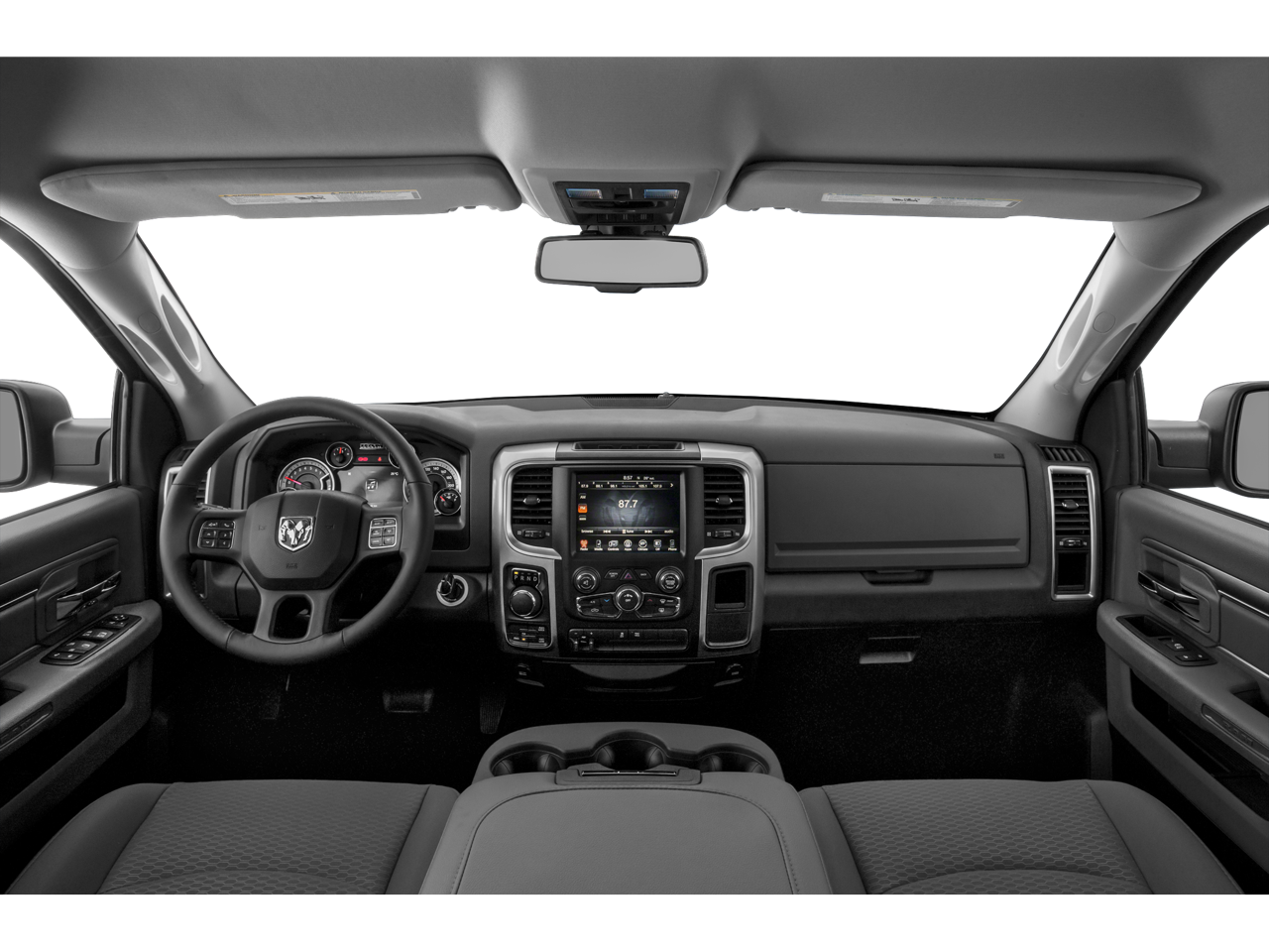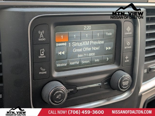 3.21 Rear Axle Ratio, 4-Wheel Disc Brakes, 40/20/40 Split Bench Seat, 6 Speakers, ABS Brakes, Air Conditioning, Alloy Wheels, AM/FM radio: SiriusXM, Black Exterior Mirrors, Brake Assist, Bumpers: chrome, Center Hub, Compass, Delay-off Headlights, Driver door bin, Dual Front Impact Airbags, Dual Front Side Impact Airbags, Electronic Stability Control, Exterior Mirrors w/Heating Element, Front Anti-Roll Bar, Front Armrest w/3 Cupholders, Front Center Armrest w/Storage, Front reading lights, Front wheel independent suspension, Fully Automatic Headlights, GPS Antenna Input, Heated door mirrors, Illuminated Entry, Integrated Voice Command w/Bluetooth®, Low Tire Pressure Warning, Manufacturer's Statement of Origin, Occupant sensing airbag, Outside temperature display, Overhead airbag, Overhead console, Panic alarm, ParkView Rear Back-Up Camera, Passenger door bin, Passenger vanity mirror, Power Door Mirrors, Power Steering, Power Windows, Radio data system, Rear Anti-Roll Bar, Rear Floor Mats, Rear seat center armrest, Rear Step Bumper, Remote Keyless Entry, Remote USB Port - Charge Only, Speed control, Storage Tray, Tachometer, Tilt steering wheel, Traction Control, Trip computer, Variably intermittent wipers, Voltmeter.