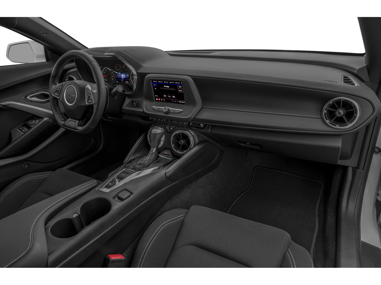 2.77 Rear Axle Ratio, 4-Wheel Disc Brakes, 6 Speakers, 6-Speaker Audio System Feature, 6-Way Power Front Passenger Seat Adjuster, 8-Way Power Driver Seat Adjuster, ABS Brakes, Air Conditioning, Alloy Wheels, AM/FM radio: SiriusXM, Apple CarPlay / Android Auto, Automatic temperature control, Bluetooth® For Phone, Body-Color Painted Splash Guards (LPO), Bose Premium 9-Speaker Audio System Feature, Brake Assist, Bumpers: body-color, Cargo Net, Cloth Seats, Compass, Dark Tint LED Tail Lamps, Decklid-Mounted Lip Spoiler, Delay-off Headlights, Driver door bin, Driver vanity mirror, Dual Front Impact Airbags, Dual Front Side Impact Airbags, Dual Mode Exhaust, Electronic Stability Control, Exterior Parking Camera Rear, Four wheel independent suspension, Front Anti-Roll Bar, Front Bucket Seats, Front Center Armrest, Front License Plate Bracket, Front reading lights, Fully Automatic Headlights, Heated Front Sport Bucket Seats, Illuminated Entry, Knee airbag, Leather Shift Knob, Low Tire Pressure Warning, Occupant sensing airbag, Overhead airbag, Paddle-Shift Manual Controls, Panic alarm, Passenger door bin, Passenger vanity mirror, Power Door Mirrors, Power Driver Seat, Power Passenger Seat, Power Steering, Power Windows, Preferred Equipment Group LT1, Premium audio system: Chevrolet Infotainment System, Radio data system, Radio: Chevrolet Infotainment 3 Plus System, Radio: Chevrolet Infotainment 3 System, Rear Anti-Roll Bar, Rear window defroster, Remote Keyless Entry, Remote Vehicle Starter System, RS Package, Security system, SiriusXM Radio, SiriusXM w/360L, Speed control, Speed-sensing steering, Steering Wheel Mounted Audio Controls, Tachometer, Technology Package, Telescoping steering wheel, Tilt steering wheel, Traction Control, Trip computer, Variably intermittent wipers, Voltmeter, Wheels: 20 Silver-Painted Aluminum.
