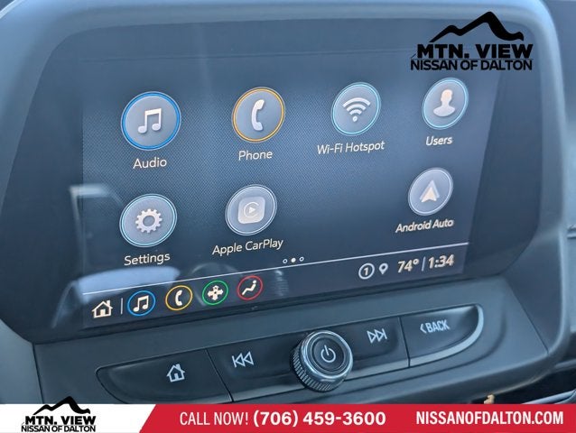 - Audio system, Chevrolet Infotainment 3 system, 7" diagonal color touchscreen, AM/FM stereo. Additional features for compatible phones include: Bluetooth® audio streaming for 2 active devices, voice command pass-through to phone, Apple CarPlay and Android Auto capable.