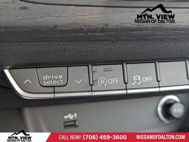 10 Speakers, 4-Wheel Disc Brakes, ABS Brakes, Air Conditioning, Alloy Wheels, AM/FM radio, Anti-whiplash front head restraints, Auto High-Beam Headlights, Auto-dimming Rear-View mirror, Automatic temperature control, Brake Assist, Bumpers: body-color, Compass, Delay-off Headlights, Driver door bin, Driver vanity mirror, Dual Front Impact Airbags, Dual Front Side Impact Airbags, Electronic Stability Control, Emergency communication system: Audi connect CARE, Exterior Parking Camera Rear, Four wheel independent suspension, Front Anti-Roll Bar, Front Bucket Seats, Front Center Armrest, Front Dual Zone A/C, Front Fog Lights, Front reading lights, Garage door transmitter: HomeLink, Genuine wood console insert, Genuine wood dashboard insert, Genuine wood door panel insert, Heated door mirrors, Heated Front Bucket Seats, Heated Front Sport Seats, Heated steering wheel, Illuminated Entry, Knee airbag, Leather Seating Surfaces, Leather Shift Knob, Leather steering wheel, Low Tire Pressure Warning, Occupant sensing airbag, Outside temperature display, Overhead airbag, Overhead console, Panic alarm, Passenger door bin, Passenger vanity mirror, Power adjustable front head restraints, Power Door Mirrors, Power Driver Seat, Power Liftgate, Power Passenger Seat, Power Steering, Power Sunroof/Moonroof, Power Windows, Radio data system, Radio: Audi Sound System, Rain Sensing Wipers, Rear Air Conditioning, Rear Anti-Roll Bar, Rear reading lights, Rear seat center armrest, Rear window defroster, Remote Keyless Entry, Speed control, Speed-sensing steering, Speed-Sensitive Wipers, Split Folding Rear Seat, Steering Wheel Mounted Audio Controls, Tachometer, Telescoping steering wheel, Tilt steering wheel, Traction Control, Trip computer, Turn signal indicator mirrors, Variably intermittent wipers, Wheels: 18 5-Double-Spoke Design.